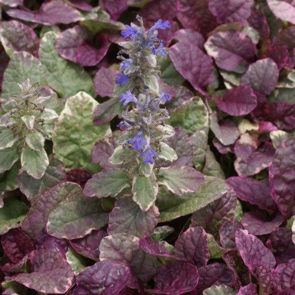 During the wintertime, Burgundy Glow Ajuga keeps the show going as it transitions to a rich bronze with burgundy tones, even remaining semi-evergreen in warm growing zones! Hardy perennials throughout an insanely wide range of climates, Burgundy Glow can grow from USDA zone 3 up to zone 10! Barely reaching 6 inches tall when in bloom, the tri-colored variegated foliage spreads 12-18 inches wide but can root and naturalize further when allowed!