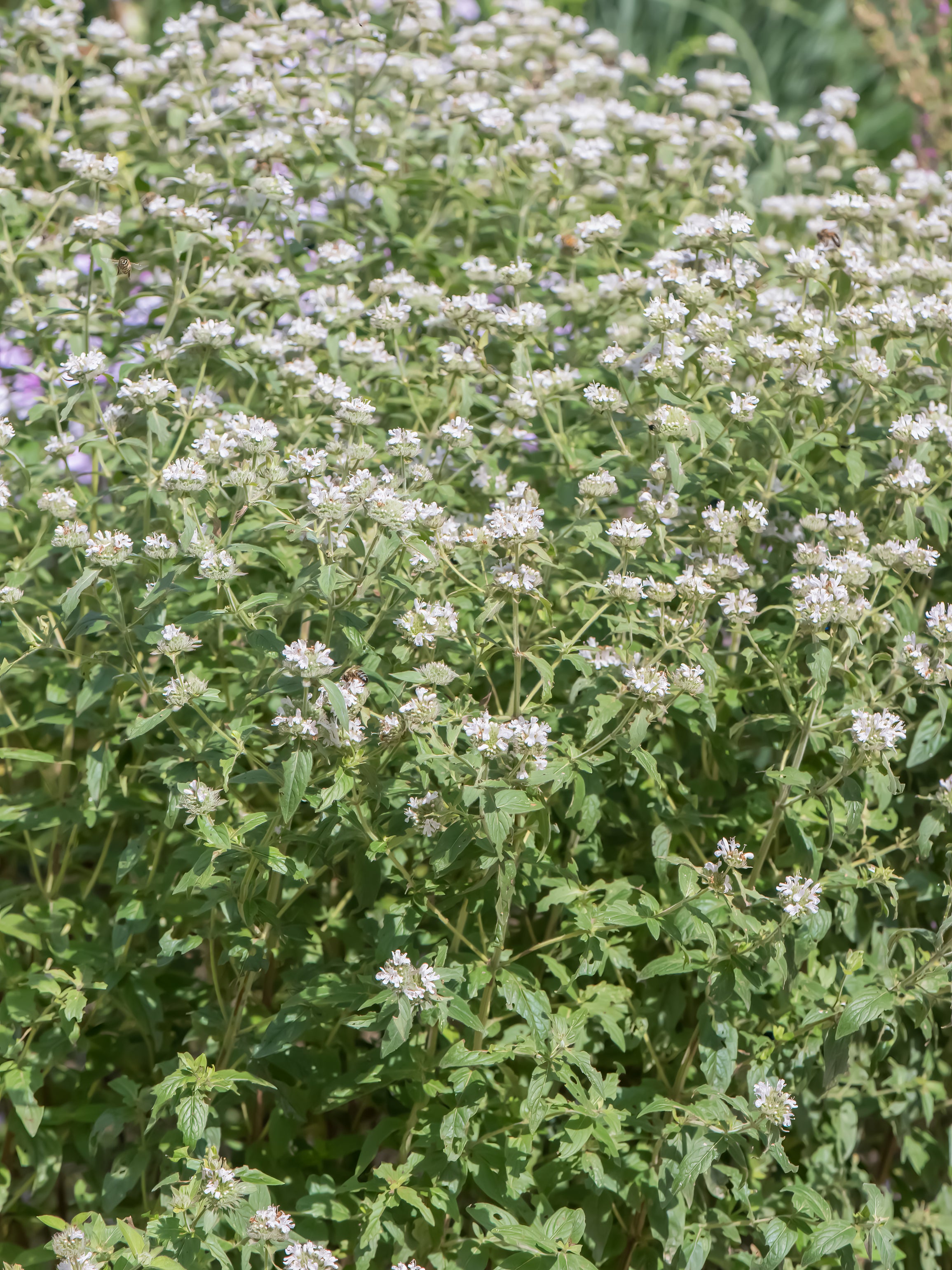 Blunt Mountain Mint forms a bushy, upright stand reaching 1-3 feet tall and about as wide, making it perfect for filling gaps in naturalized gardens.
