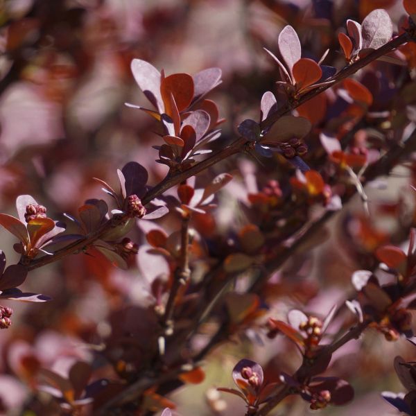 Dwarf Mini Maroon® Barberries are excellent in containers and thrive on balconies and postage-stamp-sized urban gardens! Try potting one up in a container or urn as the focal point thriller and highlight it with some golden Creeping Jenny!