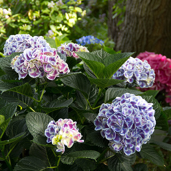 Your Cityline® Mars Hydrangea is a small plant that produces glorious six-inch blooms atop strong stems. The blooms are bi-colored, with either a rose-white accent or blue-white, depending upon the pH of your soil. You can adjust the color of your flower by making additions to the soil pH as necessary.
