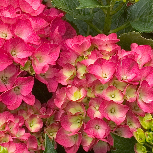 And what blooms they are! Deep reds to scarlet pinks, the flowers change over time to a lighter pink, always with a few bright green petals interspersed to add to the color show. Acidic soils may see these lovely mopheads turn to shades of purple. The stems are strong - strong enough to hold up the huge mophead flowers in the rain and in storms - and are tailor-made for floral arrangements too! Plant a few extra just so you can bring armloads of beautiful red flowers indoors all season long. One flower is large enough to fill a vase!