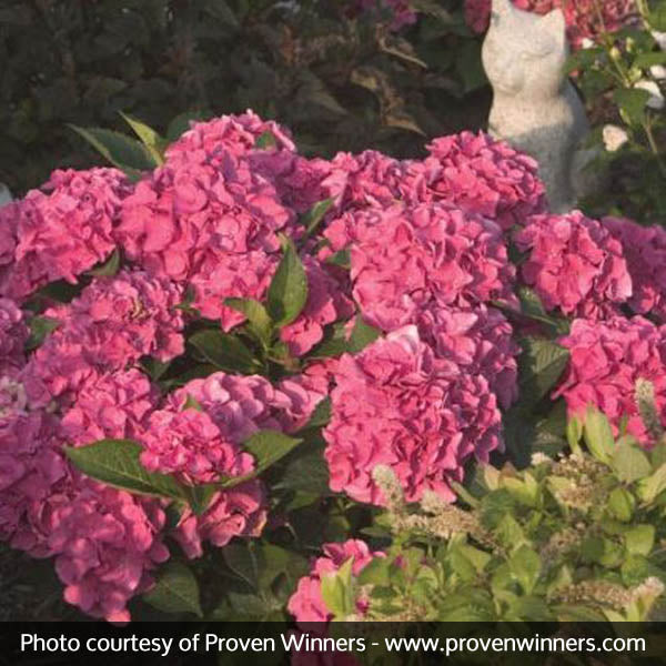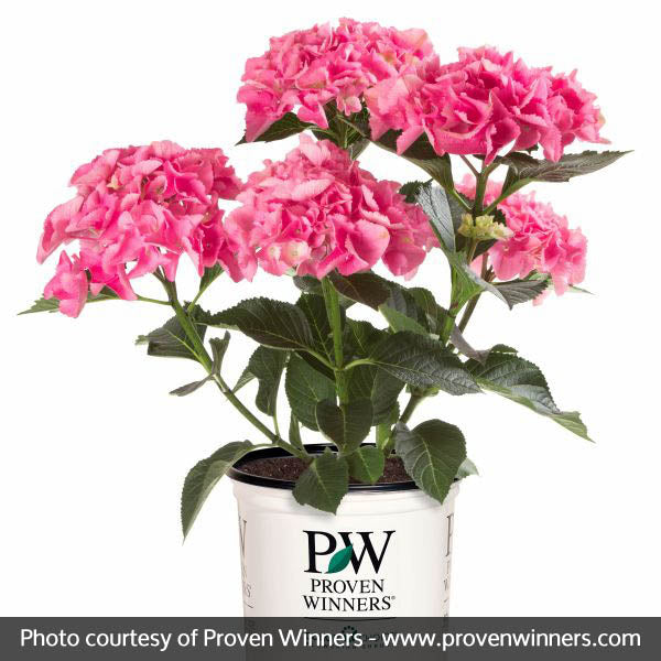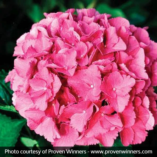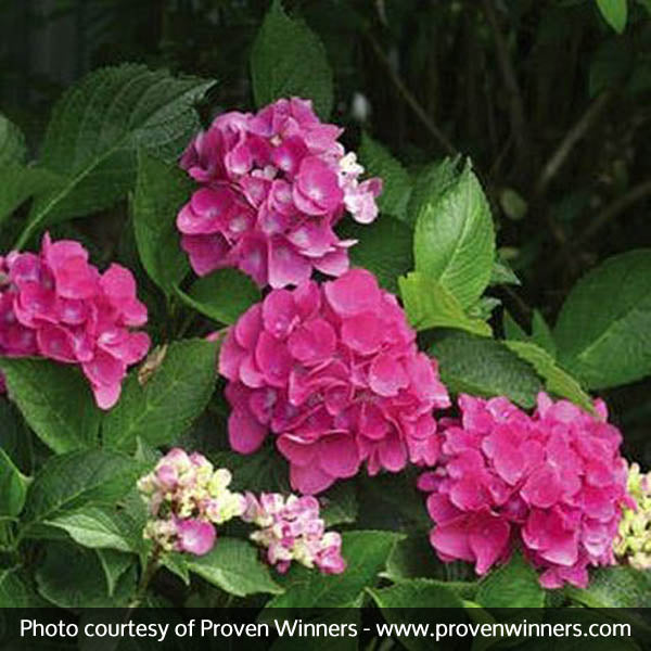 The small bit mighty Proven Winners® Cityline® Venice Hydrangea (Hydrangea macrophylla CITYLINE 'Venice Raven') has a natural dwarf habit. This lovely ColorChoice® Bigleaf Hydrangea from Germany is compact and dense, with far more flowering stems than most others. Cityline® Venice is an attention-getter with giant fuchsia blooms and fresh, attractive green foliage. The gorgeous toothy petal edges add a frilly effect to the large round mopheads.