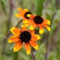 Unlike your typical Black-Eyed Susan, Prairie Glow is a showy hybrid form of Rudbeckia triloba that sports airy, branching stems and masses of smaller daisy-like flowers. The foliage is deep green and slightly rough in texture, providing a lush backdrop to the blazing flowers.