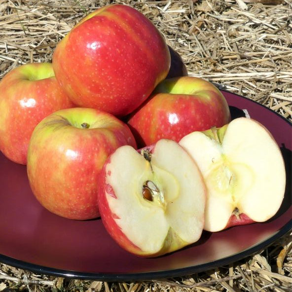 These medium-large apples are firm and aromatic, with what some say is a fragrance of pear or cider. When you approach this tree you'll be astonished by its beauty. But that's nothing compared to what you'll experience when you actually reach out and pick one!