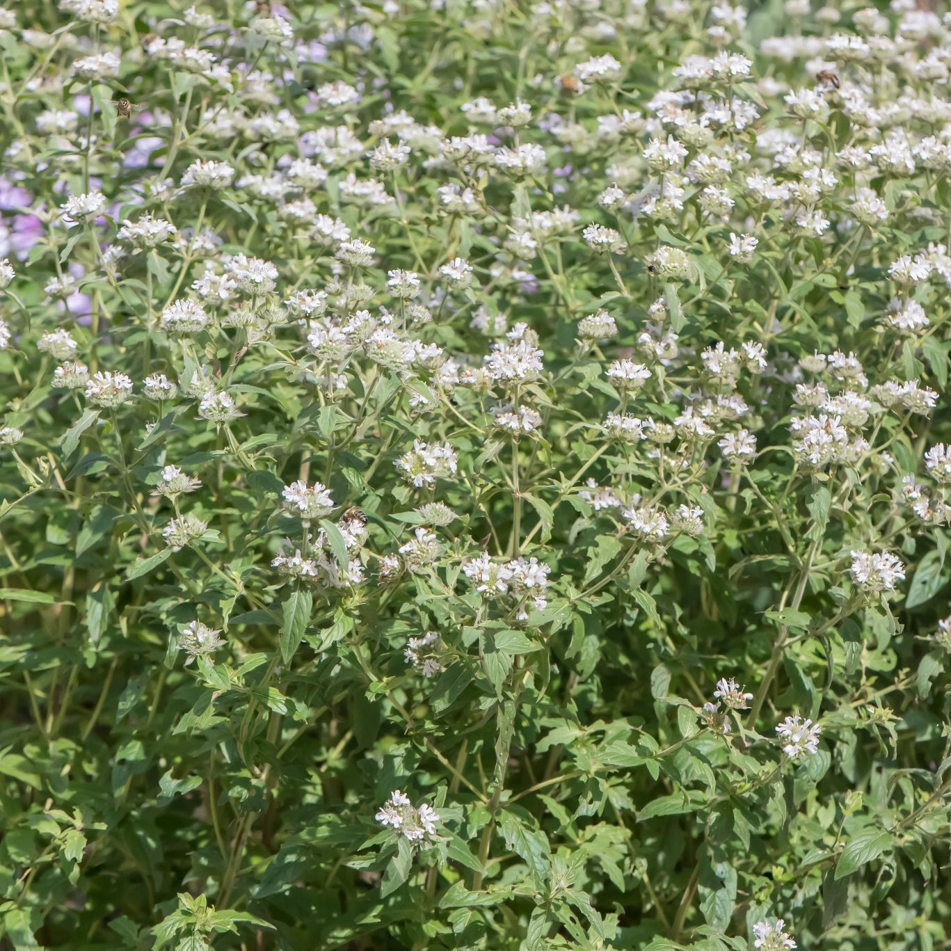 Blunt Mountain Mint forms a bushy, upright stand reaching 1-3 feet tall and about as wide, making it perfect for filling gaps in naturalized gardens.