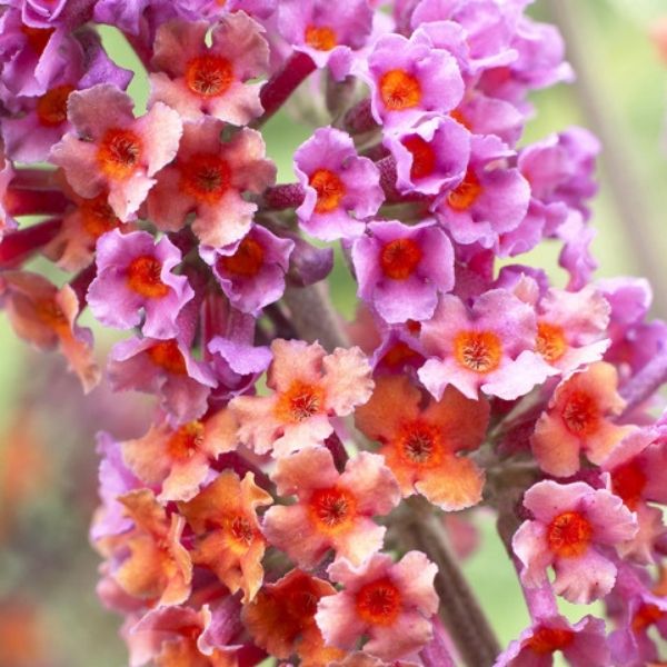 The gorgeous BiColor Butterfly Bush (Buddleia x weyeriana 'Bicolor') is the first Butterfly Bush to feature multiple colors on each long-lasting bloom! It is an intensely fragrant, long-blooming Butterfly Bush with profuse yellow and lavender blooms - amazing lavender-hued while the buds are just forming, opening to peachy pink with a yellow cast as it ages!