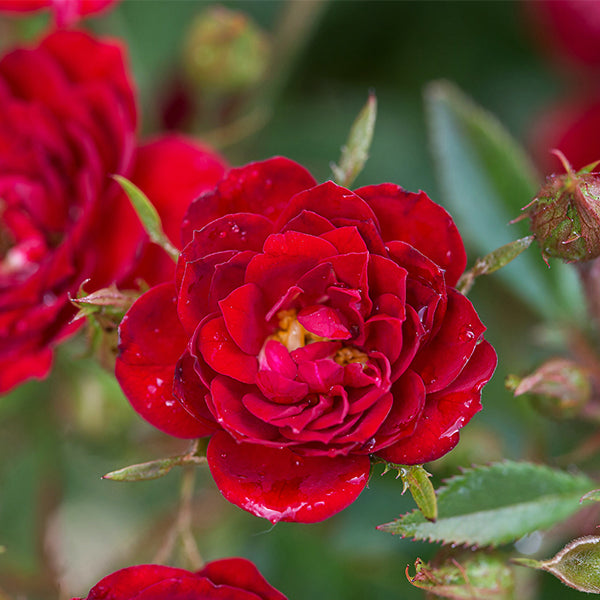 Take time to adorn your environment with its beauty and you'll be rewarded with a welcome feeling of abundance and joy. Plant a Rose hedge in the ground, or keep it in large outdoor containers to decorate your small space garden. You'll want to show these clear red blooms off.