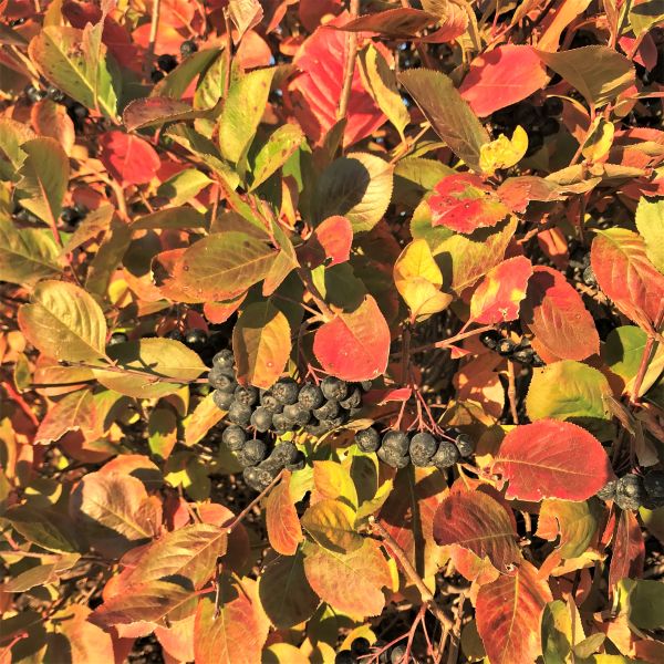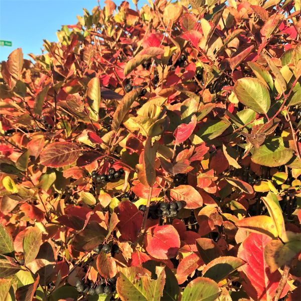 As the nights start to cool down, enjoy the spicy fall color of red, purple, and orange-hued foliage. Viking Black Chokeberry is one of the best cultivars available. It's quite simply a hardy shrub that's easy-care and offers so many benefits and seasonal interest.