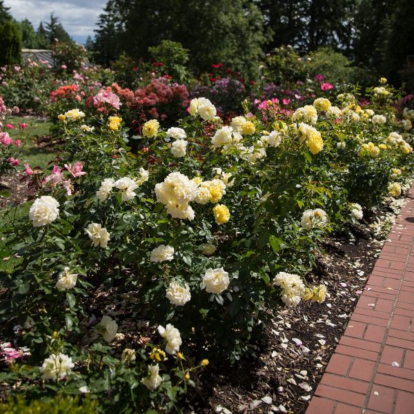 You can also brighten up bare spots in your residential or commercial property with Yellow Brick Road used as a hardworking groundcover. Imagine celebrating the positive impact on local beneficial pollinators with your garden guests or potential tenants! Mix them with other Easy Elegance® Shrub Roses, too. This clear yellow works so well with other hues from red to purple, and white to blue!