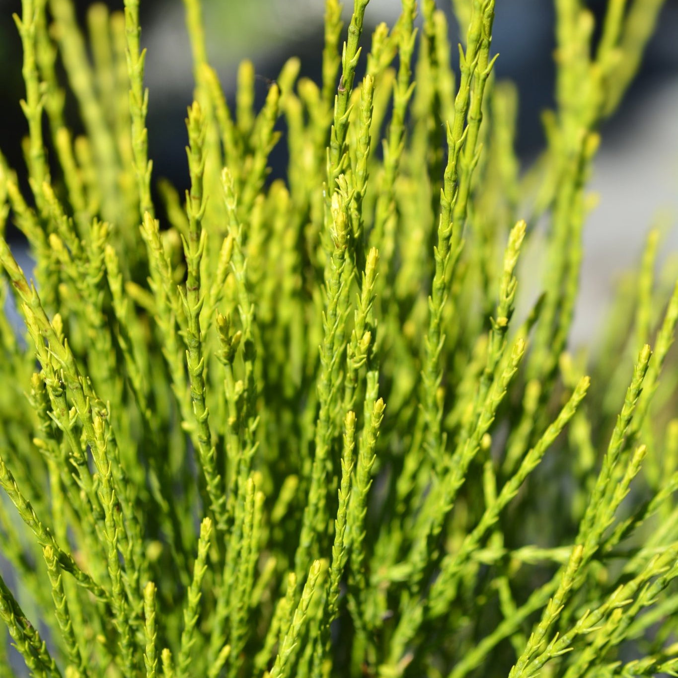 • Dwarf, teardrop-shaped upright evergreen shrub with soft, threadlike foliage