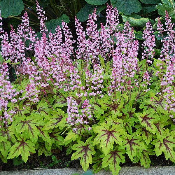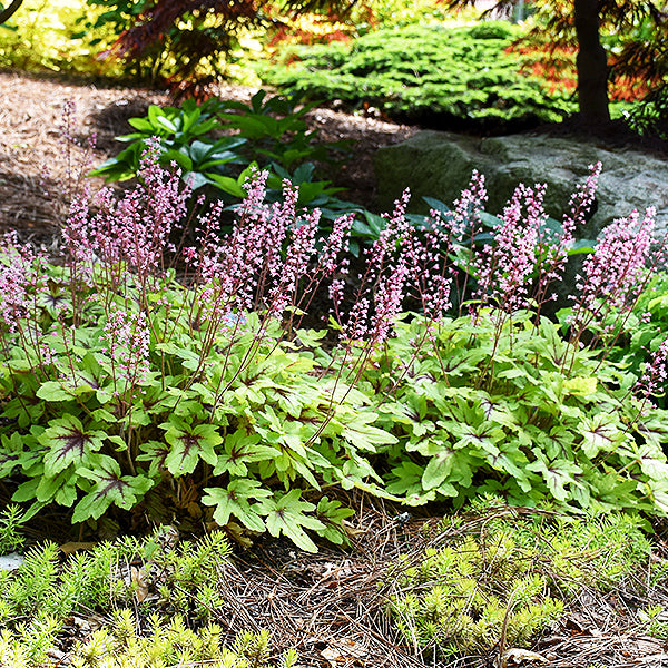 Need more to love about these Heucherella hybrid perennial plants? Their leaves can be semi-evergreen in mild winters and sometimes evergreen in warmer USDA growing zones 4 to 9 like their Coral Bells relations! Forming small and tidy mounds that gradually expand into 8-10 inch high clumps when in flower, and creeping into 15-20 inch wide mounds of sheer charm!