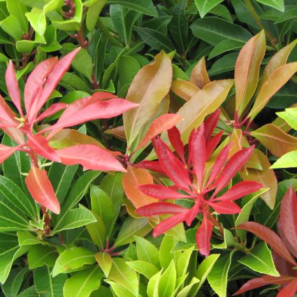 Pieris Mountain Fire (Pieris japonica 'Mountain Fire'), also know as Japanese Andromeda Mountain Fire, is a partial-shade garden show-stopper! Pieris Mountain Fire offers so many interesting features, you'll wonder why you waited this long to plant a few!