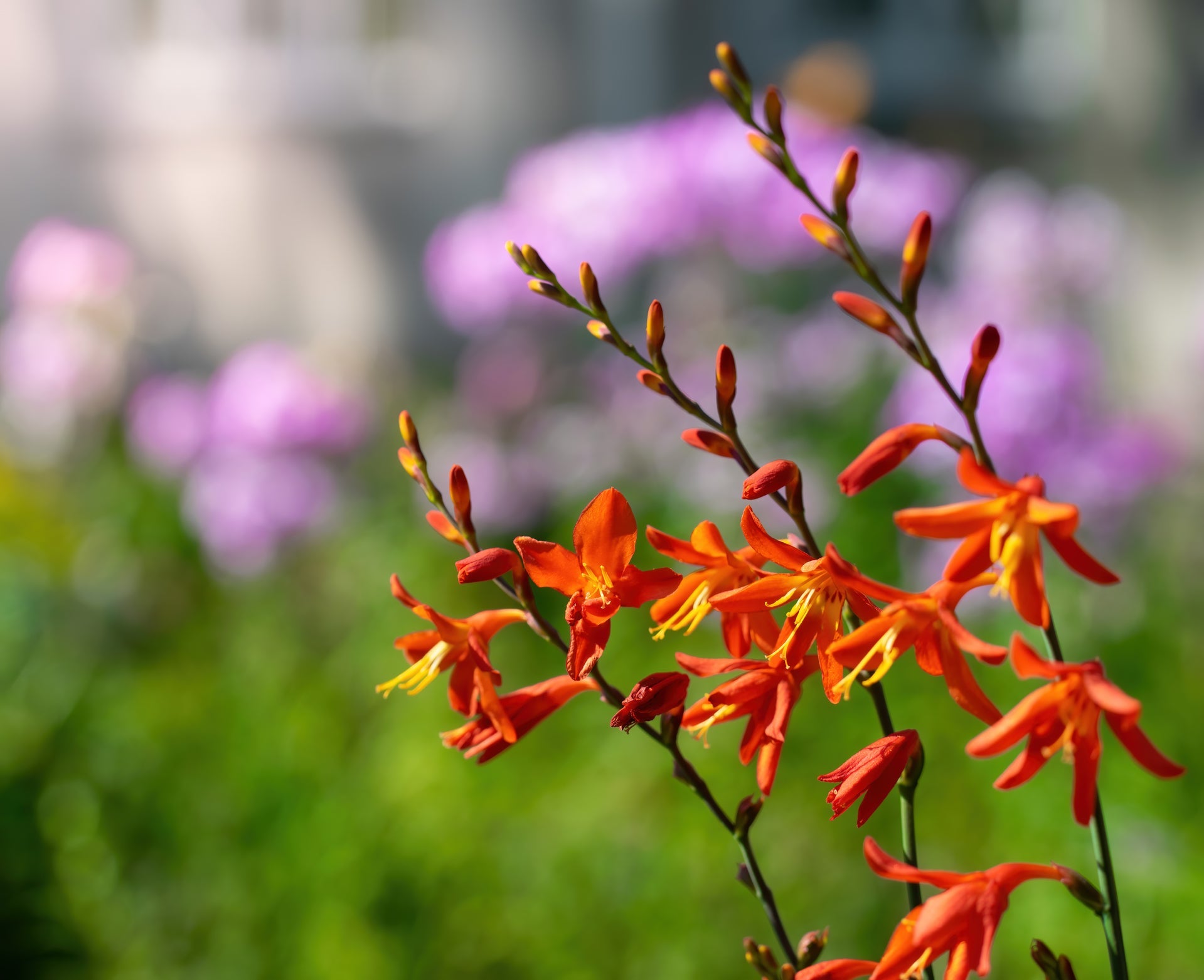 Native to South Africa, Crocosmia is part of the Iris family and thrives in Zones 5-9, with the right protection in colder areas. Orange Pekoe is a garden hybrid that's gained a fan club for its bright blooms and ease of care.