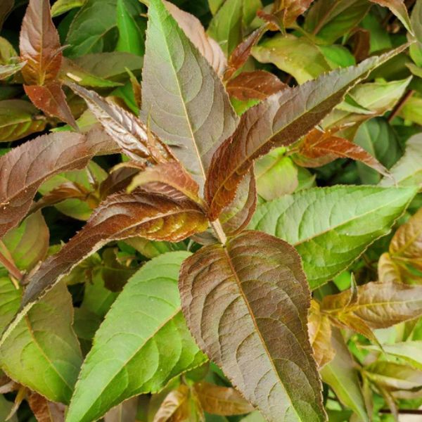 Colorful and gorgeous Ru-Bee Wren™ Bush Honeysuckle PP#30,656 (Diervilla lonicera 'Ru-Bee Wren') is a compact, deciduous shrub that brings season-long color and pollinator-friendly blooms to any garden. Known for its deep burgundy foliage and bright yellow flowers, this hardy native Diervilla hybrid is a top choice for low-maintenance landscapes. Its colorful foliage intensifies in fall, turning shades of orange, red, and purple, providing year-round interest.