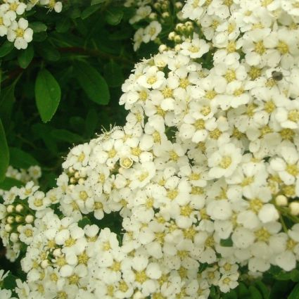 This is a tighter, more compact decorative deciduous shrub with the same beautiful arching habit. And the spectacular clusters of pure white flowers will surely remind you of the larger varieties.