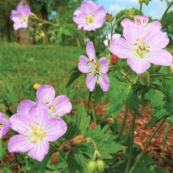One of the best characteristics of this perennial is its easy-going nature! Wild Cranesbill will thrive in full sun or partial shade and grow in many different types of soils as long as it's well-drained. Wild Geranium appreciates regular watering as long as it doesn't stay wet for too long. Provide regular moisture access during their first year, but once established, should be self-sufficient unless you are experiencing a prolonged drought. 3-4 inches of arborist mulch helps support plant roots significantly!