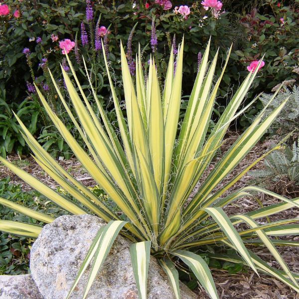 Many homeowners are interested in Xeriscape to protect our precious water resources and to save money. Rock gardens, native plants can make that goal easy to achieve. One of the most ornamental varieties of the striking Yucca family is the Color Guard Yucca (Yucca filamentosa 'Color Guard').