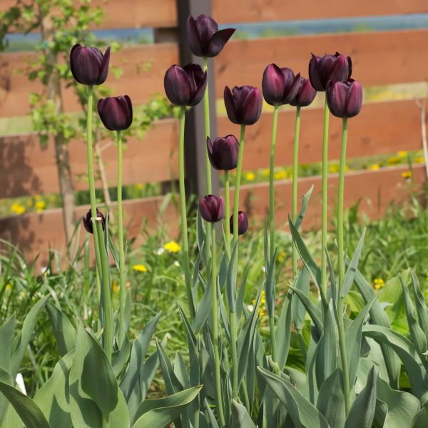Tulips are lovely container additions that light up other spring ephemerals or annual blossoms. Or plant them in groupings to maximize their glorious blooms. Queen of Night Tulips have lovely foliage that looks great among other bulbs and as edging along garden beds and borders. Add interest to Perennial gardens and add drama to Cottage gardens in grace while forming tidy clumps and drifts of elegant color that feed the bees and butterflies.