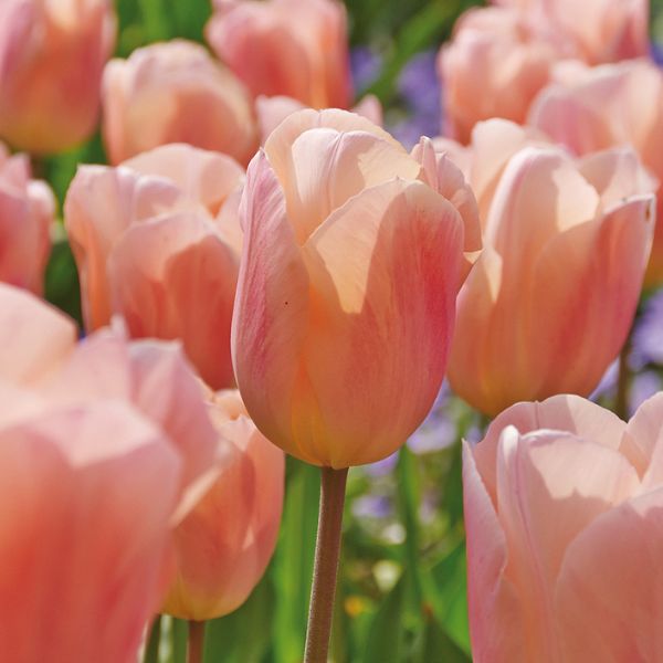 Apricot Beauty is a Triumph Tulip that is well-known to be good for forcing! Pick up a fancy urn, shallow dish of moss, or a special forcing vase to enjoy these blooms in the winter to break up the dreary indoor landscape! Wonderful gifts and pretty vase arrangement additions, you'll brighten your (or that someone special) day with their subtle peachy-keen color!