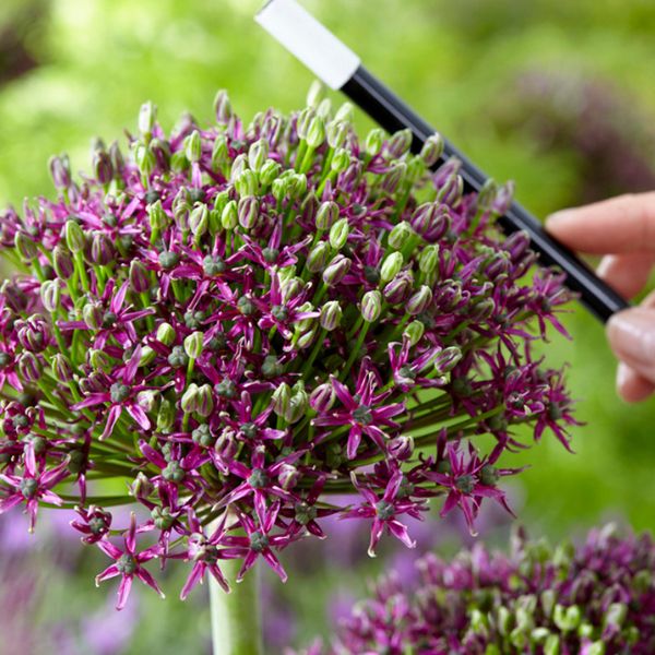 Loving full sun in cooler climates and appreciating partial shade in hot climates, any rich, well-drained soil is perfect for Allium. Fall-planted bulbs need moderate moisture needs. Any soil type is suitable so long as it is not soggy and add bulb fertilizer to each hole for best results. Despite being a member of the Onion family, there is no Onion smell unless the foliage is broken or crushed. Deadhead to remove spent blooms or try this trick - spray paint the dried seed heads any color you choose for unique garden décor for the rest of the summer and fall!