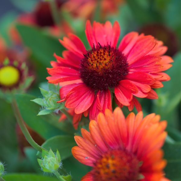 - Radiant Red-Orange Blooms & Fuzzy Darker Centers