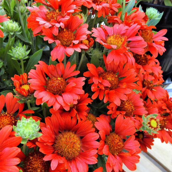 Gaillardia are well-known for pumping out lots of flowers, but Celebration takes that to a new level! From spring or early summer all the way through the first frost these little guys are covered in red-orange (more red than orange) 1-2 inch wide daisy-like flowers. The hot color saturates the petals and extends to the fuzzy-looking centers of each bloom! Not fading in the heat of summer, you will enjoy the same rich color in June as you do in August or September as flower after flower appears over the rich green mounds of neat and tidy foliage!