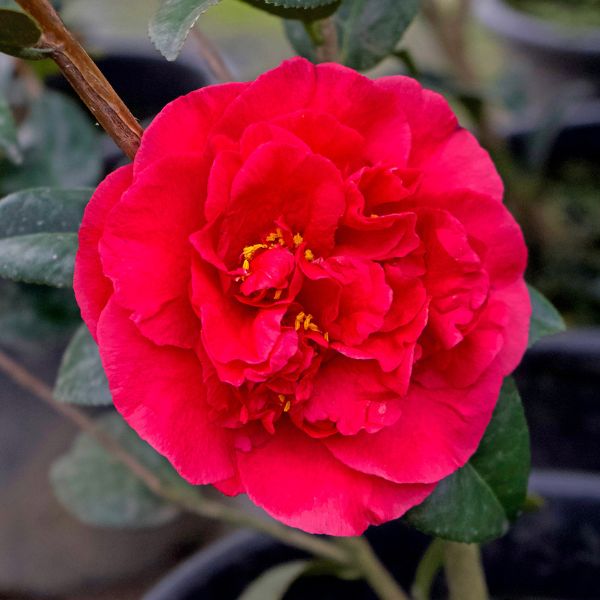Gorgeous winter-blooming Kramer's Supreme Camellia (Camellia japonica 'Kramer's Supreme') is a glossy-leafed broad-leaved evergreen shrub with bright scarlet red double blooms and fragrance when you need it most!
