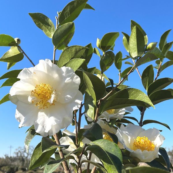 Silver Waves Camellia brightens the shady mixed shrub border and shines at the edge of the woods! The white blooms really show off in groupings and rows as property definition and year-round privacy hedges. A must-have for a Moon Garden as a tall accent shrub!