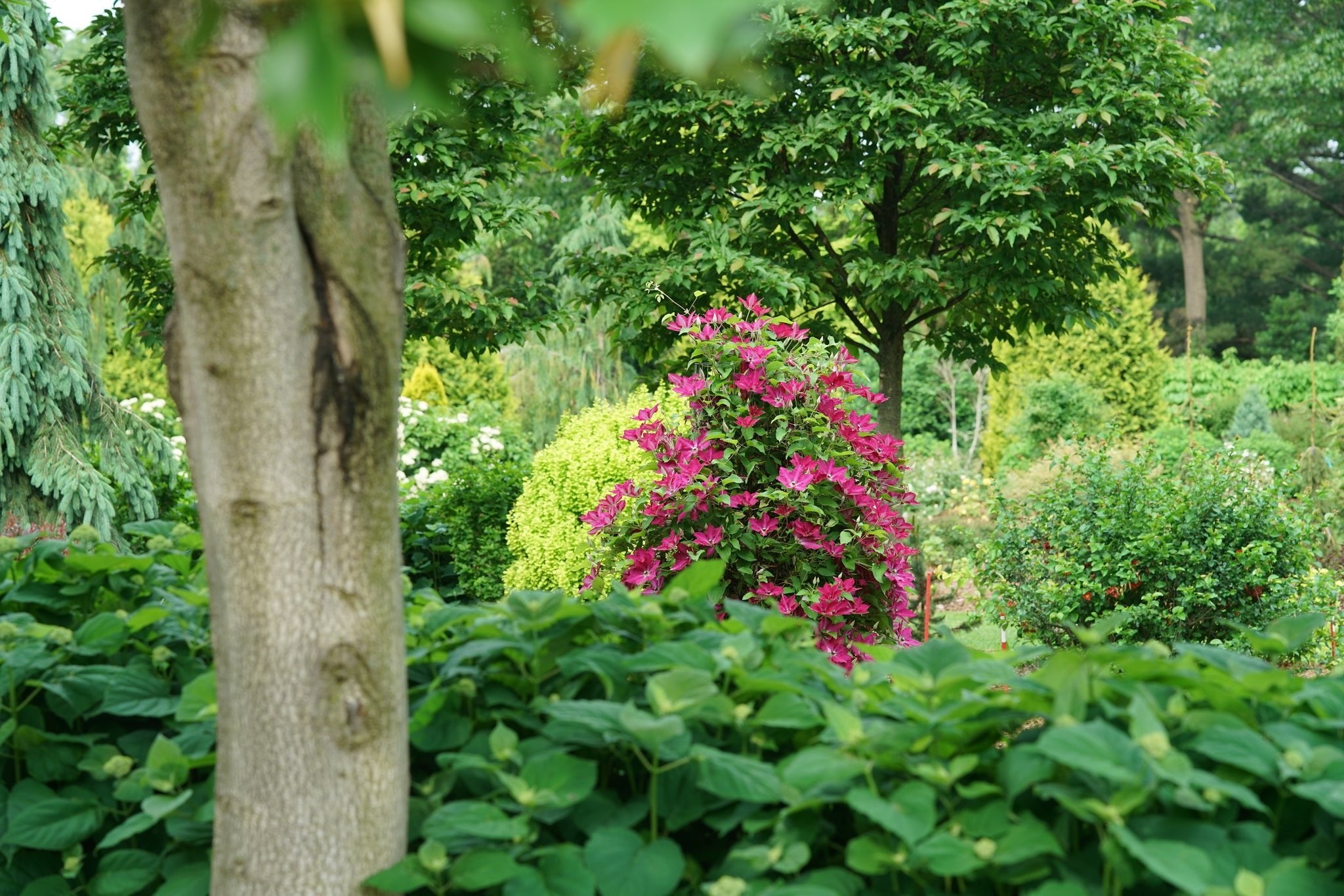 Viva Polonia is a dream for small-space gardeners and sprawling estates alike. Its manageable size makes it an ideal candidate for large patio containers, allowing you to bring those stunning bi-color blooms right to your outdoor seating area. In the landscape, use it to soften the corners of a porch, screen an unsightly chain-link fence, or add a second layer of interest to a spring-blooming shrub. It belongs to Pruning Group 2, meaning it gives you a massive flush of flowers on "old wood" in late spring, followed by a secondary show on new growth later in the season.