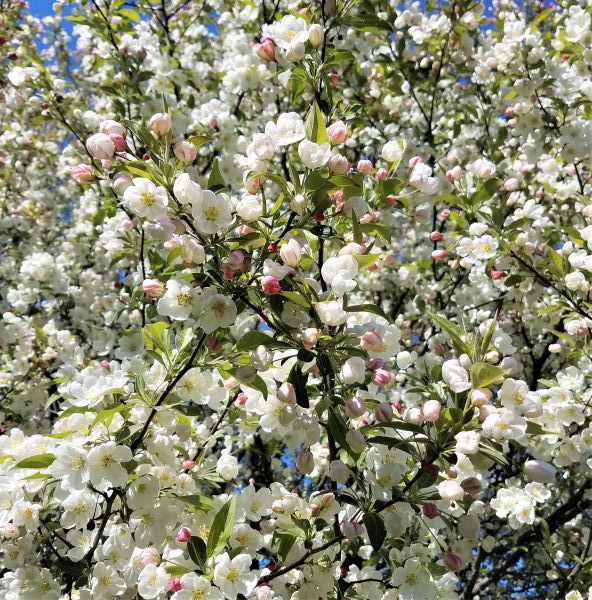 The Adirondack Flowering Crabapple Tree (Malus 'Adirondack') is an ornamental Crabapple which has carmine red buds for weeks before it explodes in waxy-white, fragrant flowers with traces of red! Much to the delight of all your pollinators each spring! You'll love how the blooms seem to overwhelm the tree with color.