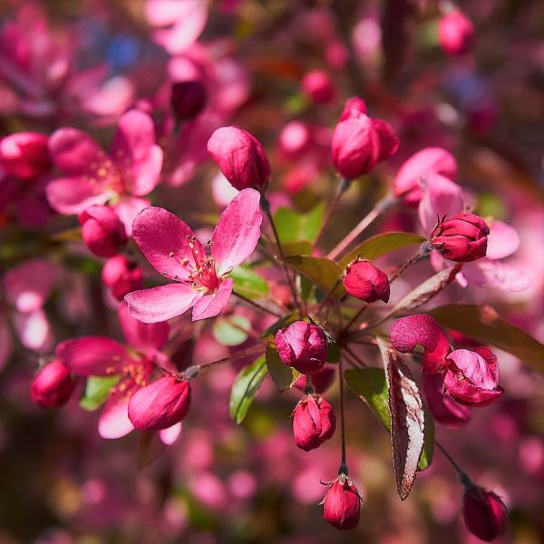 This improved variety originated in the Netherlands and has graced landscapes on both sides of the Atlantic for over a century. The intense color show of the spring bloom starts when red buds swell on bare branches.