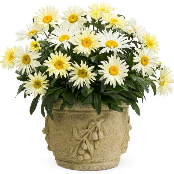 This amazing and exciting new Shasta Daisy is a must-have plant for containers, borders, or as a specimen planting that adds unexpected color to your garden! Hardy enough for Rock Gardens, and unique additions for a Children's Garden! No outdoor landscape is not a problem, simply grab a terra cotta pot and use this white beauty as the filler in a thriller-filler-spiller combo. They say a first impression is most important and a delightful set of Daisies planted as edging in your front yard or by your front door to greet your guests is a marvelous way to be bold!