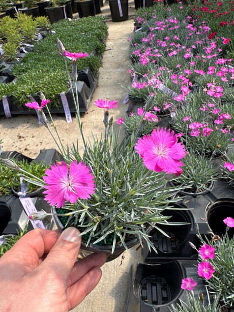 Dianthus, known as Pinks, and closely related to Carnations and Sweet William, is a hardy, herbaceous perennial loved for its bright, fragrant blooms and evergreen foliage!