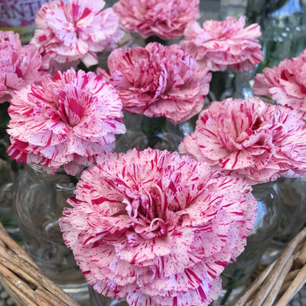 Pinball Wizard starts blooming in the spring with masses of fancy, white and hot-pink striped flowers on top of gorgeous blue-silver foliage. The flowers are double, looking more like Carnations than not. They bloom steadily all the way until fall on strong stems that are just begging to be cut. They have such a strong spicy, clove scent, you'll want to pick armloads to bring inside.
