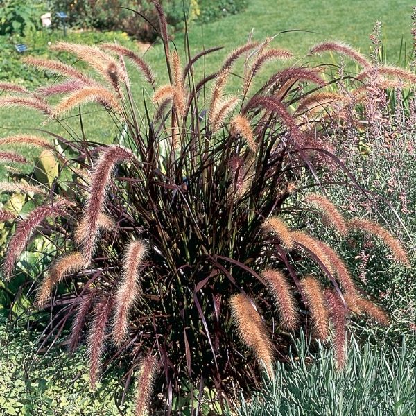 Add a long-lasting dramatic fountain of color for very little effort with Purple Fountain Grass (Pennisetum setaceum 'Rubrum'). Rely on this charming choice for texture, motion and intense hues. These tall stems of Purple Fountain Grass soar above its foliage. They are tipped with foot-long burgundy plumes.