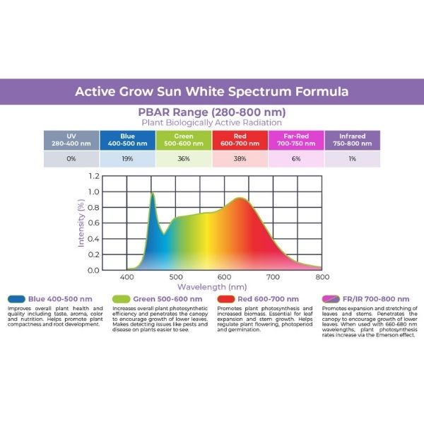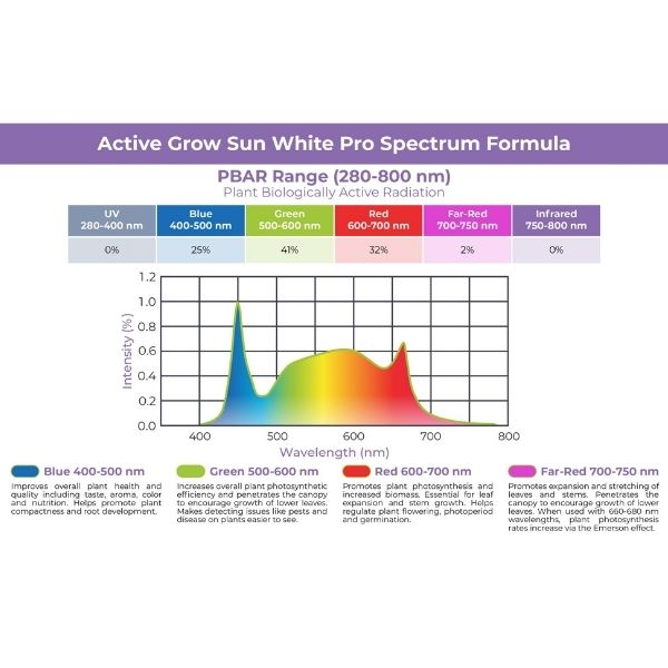 Choose between the Sun White Spectrum with a high color rendering index (CRI) that mimics natural sunlight conditions and boost photosynthesis rates. Or select Sun White Pro Spectrum for healthy vegetative growth, root development, tight internodal spacing and phytochemical production.