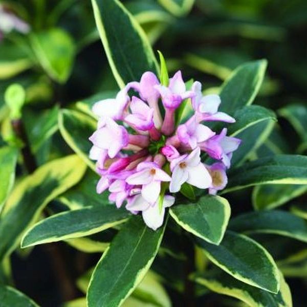 Cunning creamy yellow edges run along the margins of each glossy deep green leaf for a big impact. This Daphne variety holds its leaves densely and in a nice round shape as it grows into a sweet, tidy ball with minimal pruning. The leaves look fantastic when the round flower clusters of pink buds burst open into lighter pink, sweetly fragrant four-petaled blossoms!