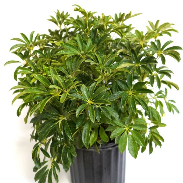 Easy care, Dwarf Green Umbrella Plant (Schefflera arboricola) is a compact bushy plant that features umbrella-shaped whorls of oval leaves in a luscious deep green! Featuring a dense yet bright clump of tropical broadleaf evergreen foliage. These gorgeous houseplants are super easy to care for, dwarf-sized and will never overtake a planter or interiorscape.