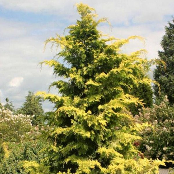 Take the golden hours of sunset to the next level with Golden Hinoki False Cypress. Its gorgeous golden needles and delicate looking conical shape give the tree character that lasts all four seasons. Order one to complete your cottage garden look today!