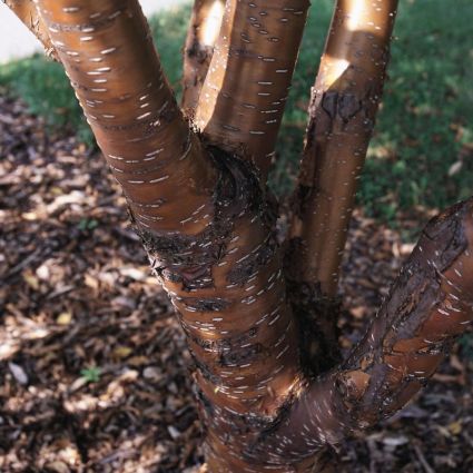 Similar to a Birch tree, the outer bark peels back in thin, paper-like sheets in a stunning display. Amur Chokecherry's attractive bark peels to reveal various shades of bronze, amber, copper and orange.