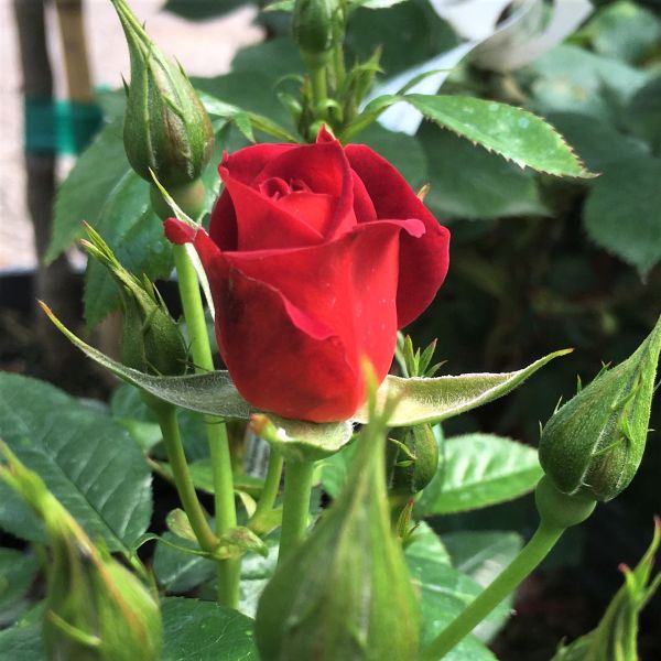 Growing Roses in outdoor containers requires a consistent schedule of supplemental moisture. Don't forget to add a thick layer of Mulch, then pull it back away from the canes. Feed them specialty Rose fertilizer according to the label instructions. Reblooming Roses are hungry and require supplemental feeding.