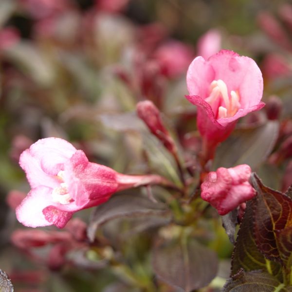 Weigelas are pollinator-friendly shrubs and feed hummingbirds with nectar-rich trumpet-shaped blooms!