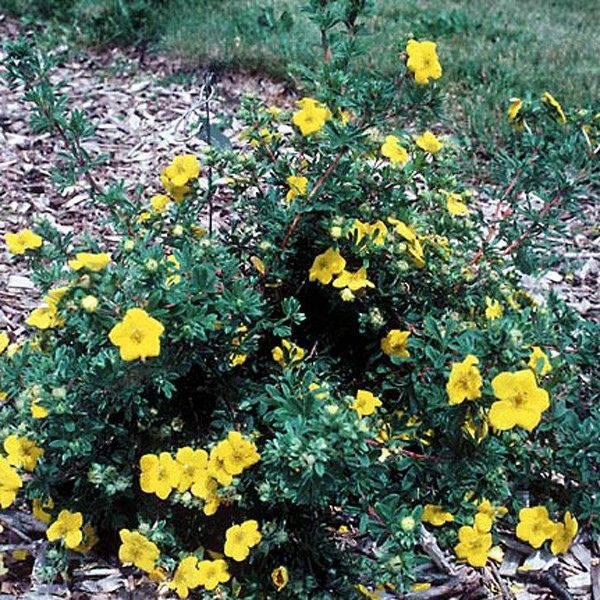 Happy yellow flowers, the lovely sunny color in your yard, but prefer to keep things nice and easy? Try the durable, sweet little Goldstar Potentilla (Potentilla fruiticosa 'Goldstar') across your landscape. It's easy charm and enormous flower power can perform like a champ without any fuss or muss. The 5-petaled, 1 to 2-inch, single blossoms are so bright and sunny that your shrub will appear to be covered in "gold stars" throughout the season.