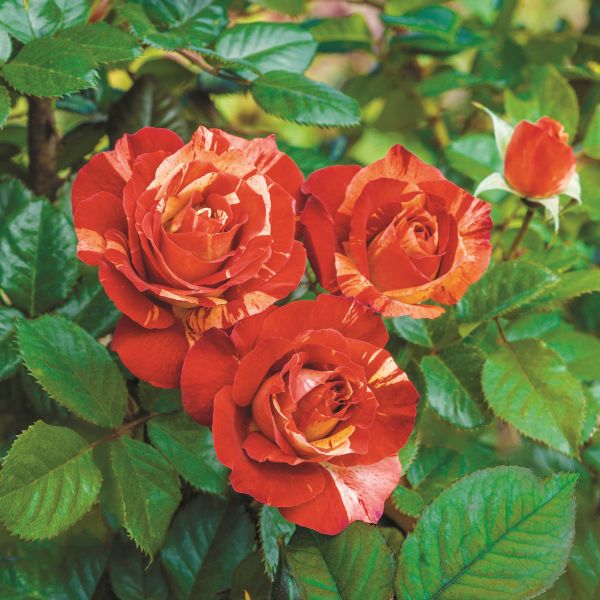 Earn curb appeal and major garden cred from visitors and everyone walking past your yard will strike up a conversation once they lay eyes on this Rose! Tropical Lightning™ Climbing Rose (Rosa 'ORAlodsem') will earn you all this and more! Even the name has a ton of pizzazz, doesn't it? Even the textured, glossy green foliage looks incredible!