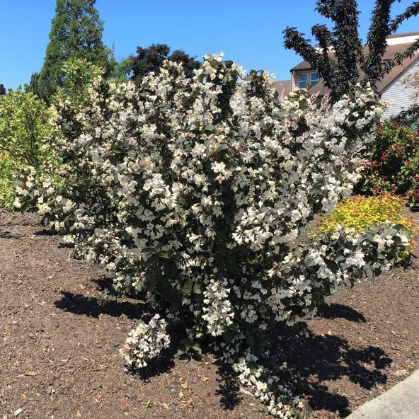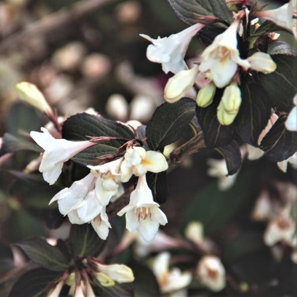 The result of a top breeding program, Tuxedo™ Weigela has emerged as a strong grower with loads and loads of bright white flowers against striking foliage. The deep, burgundy-green coloration is so dramatic, the foliage is almost black in appearance!