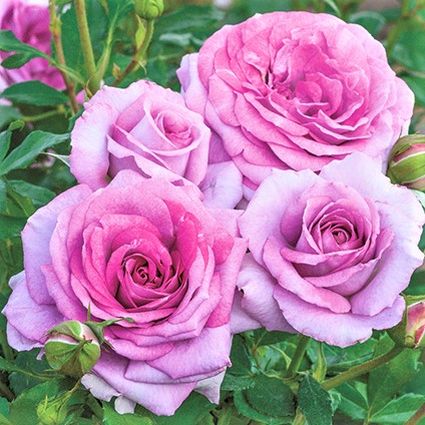 Gorgeous flowers, wonderful scent, improved disease resistance, and easy care maintenance! Hardy throughout USDA growing zones 5 through 9, Violet's Pride™ grows to a 3-4 foot tall rounded shrub that spreads just 2-3 feet wide. Disease-resistant and seldom damaged by deer or rabbits, you'll enjoy an easy-care, brilliant, free-flowering Floribunda Rose that will provide enjoyment for years to come!