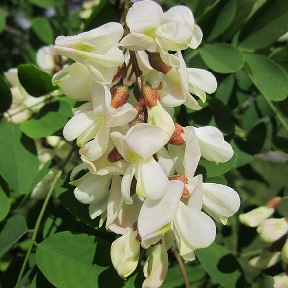 Farmers, homesteaders, and entrepreneurs take note! This native hardwood tree has many valuable uses as a cash crop, as an edible ornamental (flower fritters!), honey, and gorgeous shade tree! The Black Locust Tree (Robinia pseudoacacia) features white fragrant spring flowers and a fast-growing open, airy canopy is a big bonus!