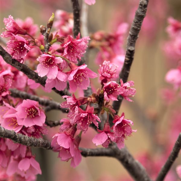 The blooms last for a particularly long time compared to other Flowering Cherries. The rosy pink flowers have a mild fragrance.
