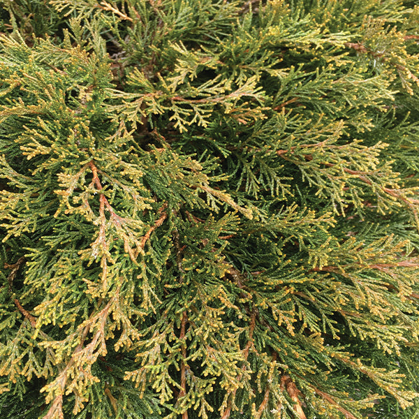 Choose an evergreen selection for structure, texture, and color all year long! For a showy look in a very low-growing conifer, select the Calgary Carpet® Juniper (Juniperus sabina 'Monna'), which features bright green foliage that is nice and soft. No need for gloves when handling this "pricker-less" variety!