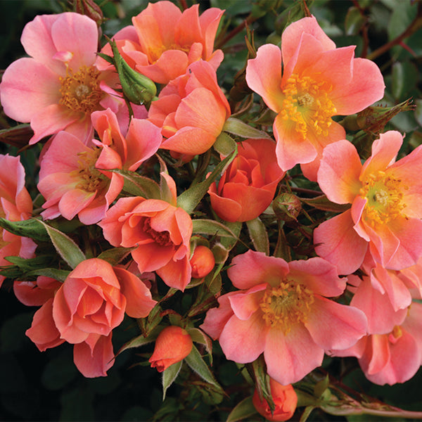 These flower clusters shine against forest green foliage! While you can expect some color change, these Roses resist spotting and fading no matter how much sun they're planted in! The open blooms resemble landing pads for pollinators that will adore these nectar and pollen-rich blossoms as much as you will! While its bountiful blooms will brighten your days, the Sunset Happy Trails™ Rose's fruity fragrance will also boost your mood.